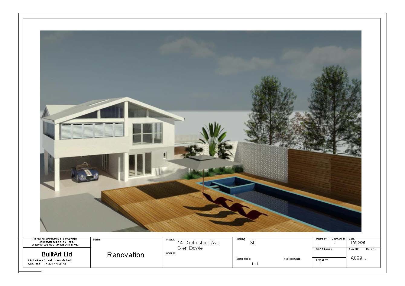 Learn MoreSimon Muir - Projects - 36 Seacliffe Ave - 56a Tohunga "I've worked with Darren from BuiltArt for the past 5 plus years across a couple of project. A major Redesign in Parnell with a tricky Character/Heritage Overlay and a New build design in Hillsborough on the coast with a SEA overlay and sloping site to deal with. The designs that Darren came up with were incredible and very unique. He has a great vision of how to use the aspect of land and environment to then translate the building design into it. He is a pleasure to work with, being easy going but at the same time very quick at turning things around of high quality, very hard to find in my experience! I'm happy to provide a reference and if you are looking for a Creative, Original Artist to help you with your property then check Darren from BuiltArt out."